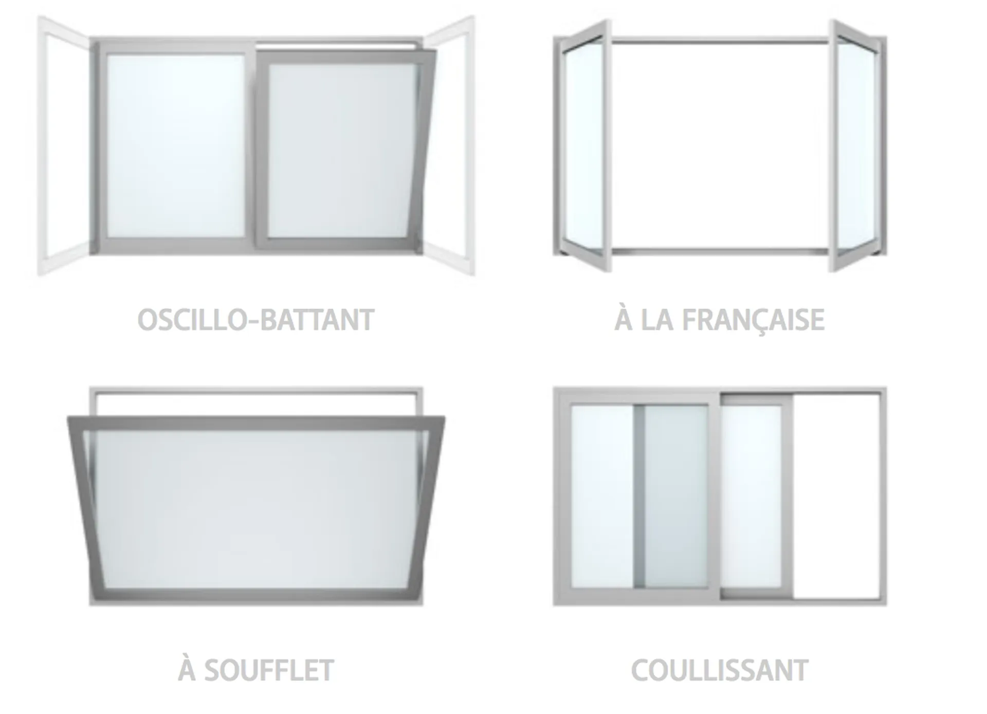 - personnalisables : Vous avez le choix dans une large gamme de types d'ouvertures, poignées et couleurs de PVC.