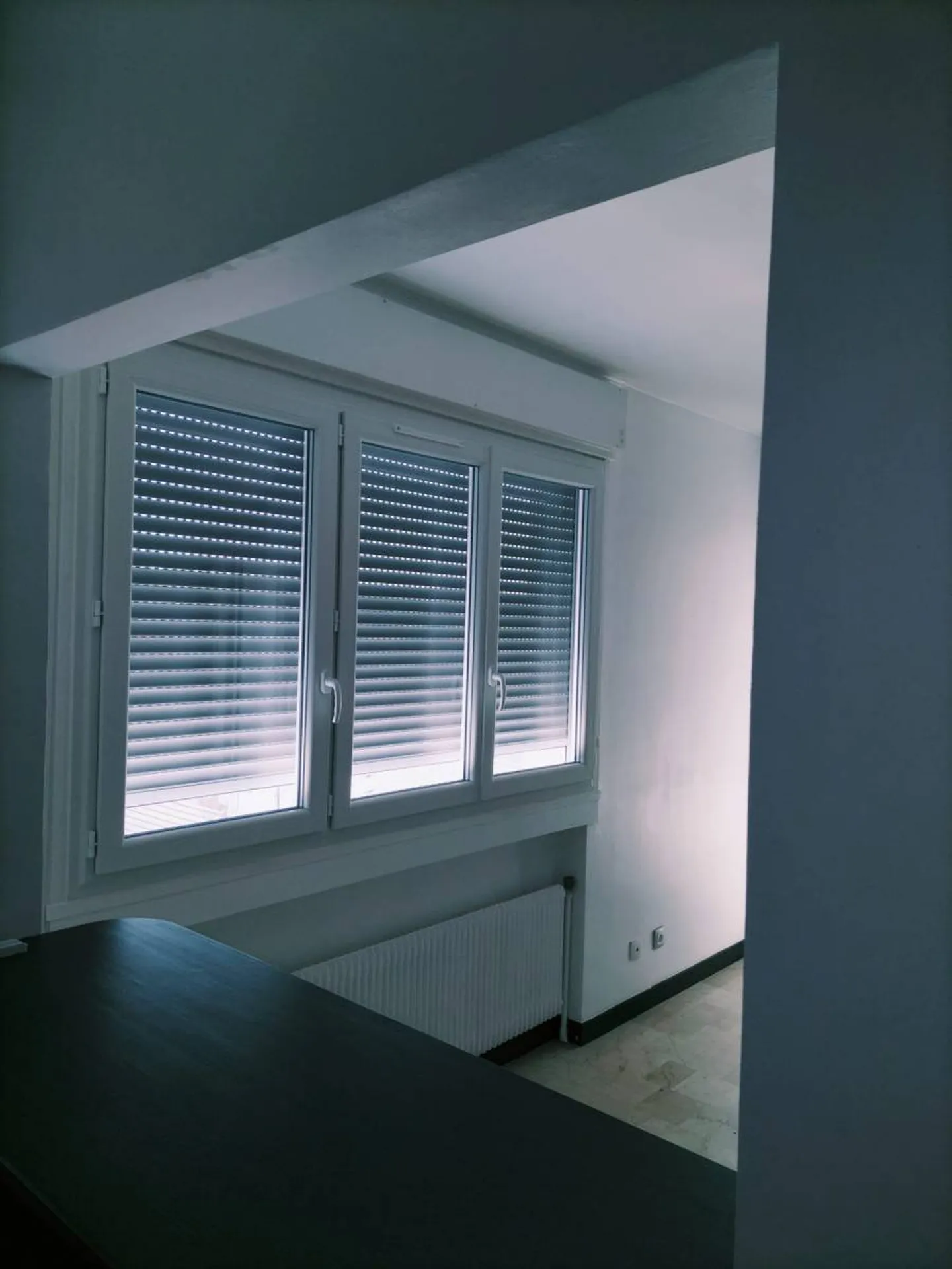 Le dormant est fixé en rénovation avec aile de recouvrement intégré. La poignée est centrée pour un meilleur esthétisme . L’installation a été réalisée en conservant les volets roulants aluminum existants qui sont dans le coffre menuisier bois.