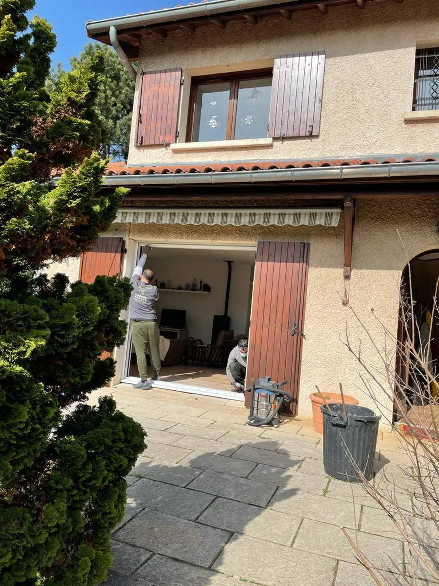 Ici, en images un chantier récemment réalisé dans une maison à Bron. avec l'installation d'une fenêtre en aluminium dans la pièce de vie.