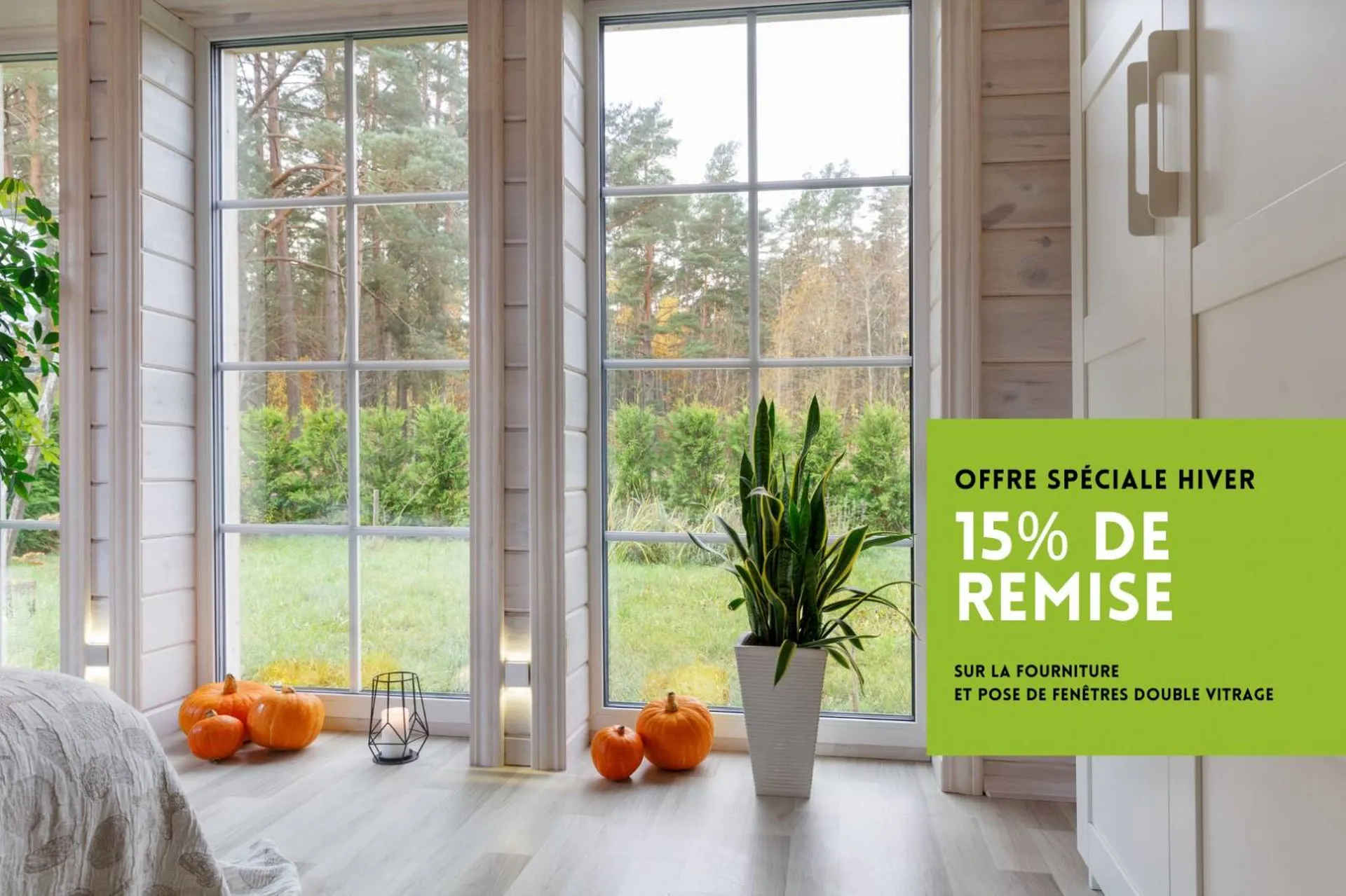 15% de réduction sur toutes nos fenêtres PVC double vitrage.Il est essentiel de s'assurer que votre maison soit bien isolée, et quoi de mieux que de nouvelles